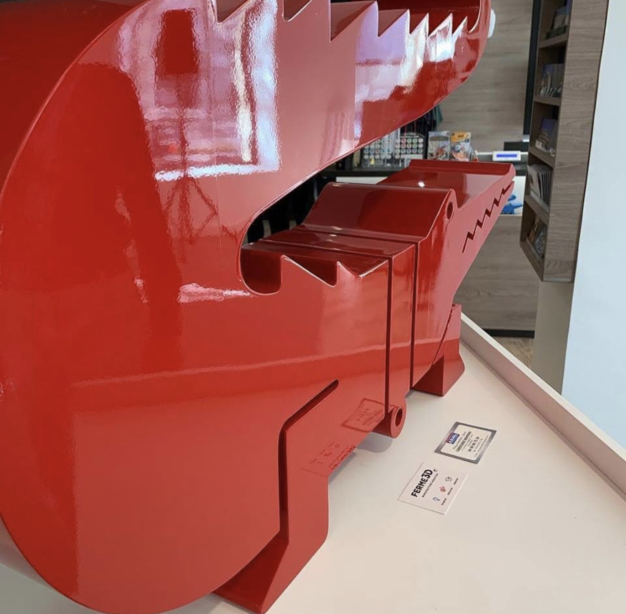L’objet imprimé à beaucoup plus à la ville de Nîmes et aux visiteurs de l’office de tourisme, nous avons donc décidé d’imprimer notre modèle dans une version de cinquante centimètres dans un premier temps et puis une version d’un mètre de long par la suite ! L’objet ne pouvant pas s’imprimer en une fois ( taille plus important que nos plateaux d’impression), nous avons dû développer un système d’assemblage complexe et travailler sur le post-traitement afin de sublimer l’objet final !